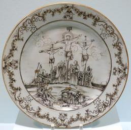 View Original: | Plate of Jesuit ware with crucifixion scene, Chinese export, c. 1745, porcelain, polychrome enamel, gilding - Krannert Art Museum, UIUC - DSC06608.jpg (3531x3511) | |||