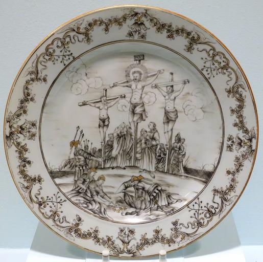 Keywords: Plate of Jesuit ware with crucifixion scene, Chinese export, c. 1745, porcelain, polychrome enamel, gilding - Krannert Art Museum, UIUC - DSC06608.jpg en Exhibit in the Krannert Art Museum University of Illinois at Urbana-Champaign - Urbana-Champaign Illinois USA This work is old enough so that it is in the public domain 2015-06-15 13 16 37 own Daderot other versions PD-old-100 cc-zero Chinese export porcelain in the Krannert Art Museum |