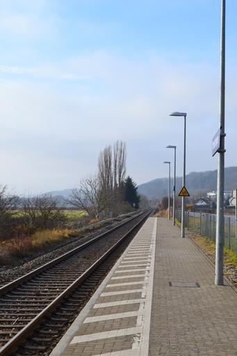 Keywords: platform railway station sun sky blue seemed gleise route railway