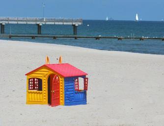 Keywords: playhouse play children baltic sea sea water beach bank sea bridge holiday summer