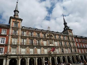 Keywords: plaza mayor madrid spain space town hall historically architecture tower facade downtown old town tourism monument castile