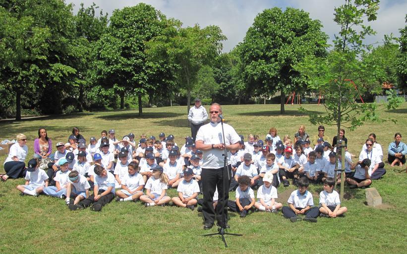 | Keywords: Pliant'tie du Tchêne du Chent'naithe La Preunmié Tou Saint Hélyi Jèrri 16 dé Mai 2011 08.jpg La pliant'tie du Tchêne du Chent'naithe à La Preunmié Tou Saint Hélyi Jèrri lé 16 dé Mai 2011 Seigneur of the Fief des Mélèches James Le Gros plants a centenary oak with the help of children from First Tower School 16 May 2011 marks exactly 100 years since the land for the park was gifted to the Parish of Saint Helier by the Seigneur's ancestor own photo 2011-05-16 13 18 01 Man vyi 2011 in Saint Helier Jersey People of Jersey in 2011 Groups of people in Jersey Tchêne du Chent'naithe Gardens in Jersey Parks in Jersey Schools in Jersey Tree planting Christianity in Jersey Taken with Canon PowerShot A2100 IS |
