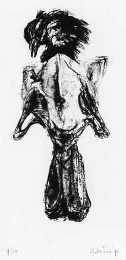 | Keywords: very-thick-stone verythickstone repolished-after-use repolishedafteruse hubertine-heijermans hubertineheijermans during-one-year duringoneyear 1970 villa-schifanoia-fiesole villaschifanoiafiesole florence italia italy blackandwhite drawing monochorme illustration plucked-pigeon pluckedpigeon bird dead-bird deadbird lithograph litho-stone lithostone lithography litho steendruk gravure-sur-la-pierre gravuresurlapierre stone dennis-olsen dennisolsen on.paper onpaper monochrome black and white This pigeon was shot in the hills above Florence. Italians like to prepare and eat them. When getting the bird time was limited, before decay would start and therefore the artist preferred to make a litho and went to Villa Schifanoia, where they had an authentic litho-press and lime-stones on which to make the drawing, what is done directly on the stone, who has been prepared in advance. The soft stone absorbs the greasy ink. After preparing the drawing she was ready to print it. But inking is a heavy job for a woman. Nobody would believe her, that she made the litho herself and not had it done for her. But here is a picture of her friend turning the wooden spikes of the litho-press, on which the stones had to be carried. (by a strong helper). Professor in lithography was Professor Dennis Olsen, who also gave the credits in printmaking on stone for the MA degree. En français: oiseau mort, authentique lithographie, préparée et imprimée par l'artiste sur la presse de la Villa Schifanoia. Là se trouvaient des ateliers spécialisés pour un nombre très réduit d'étudiants pour leurs MA degré. Professor Dennis Olsen, un jeune Américain examinait le travail et donnait les 'crédits'. En 1970 l'école Internationale 'Santa Reparata,' for printmaking in Florence, était fondée par le professeur Emeritus Dennis Olsen, appelé SISR. This pigeon was shot in the hills above Florence. Italians like to prepare and eat them. When getting the bird time was limited, before decay would start and therefore the artist preferred to make a litho and went to Villa Schifanoia, where they had an authentic litho-press and lime-stones on which to make the drawing, what is done directly on the stone, who has been prepared in advance. The soft stone absorbs the greasy ink. After preparing the drawing she was ready to print it. But inking is a heavy job for a woman. Nobody would believe her, that she made the litho herself and not had it done for her. But here is a picture of her friend turning the wooden spikes of the litho-press, on which the stones had to be carried. (by a strong helper). Professor in lithography was Professor Dennis Olsen, who also gave the credits in printmaking on stone for the MA degree. En français: oiseau mort, authentique lithographie, préparée et imprimée par l'artiste sur la presse de la Villa Schifanoia. Là se trouvaient des ateliers spécialisés pour un nombre très réduit d'étudiants pour leurs MA degré. Professor Dennis Olsen, un jeune Américain examinait le travail et donnait les 'crédits'. En 1970 l'école Internationale 'Santa Reparata,' for printmaking in Florence, était fondée par le professeur Emeritus Dennis Olsen, appelé SISR. |