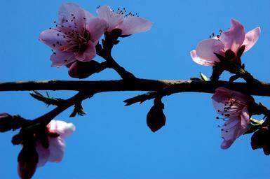 Keywords: plum blossom pink branches blue sky pistil sweet in full bloom