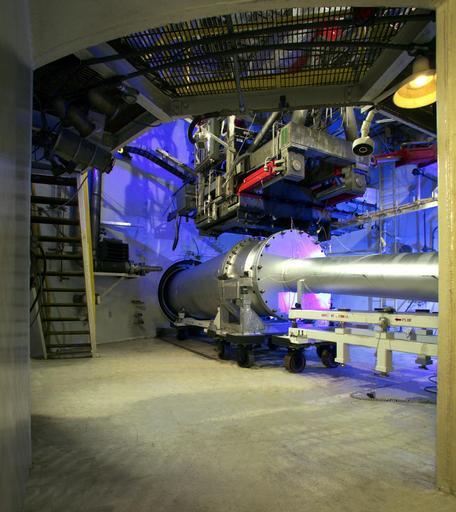 MAKE A MEME View Large Image The smaller-diameter pipe is a dummy insert used for calibration. The model support and injection system used with open-jet testing is clearly visible over the tunnel. (C-2004-01718): The Direct Connect Combustion Rig, used for ...