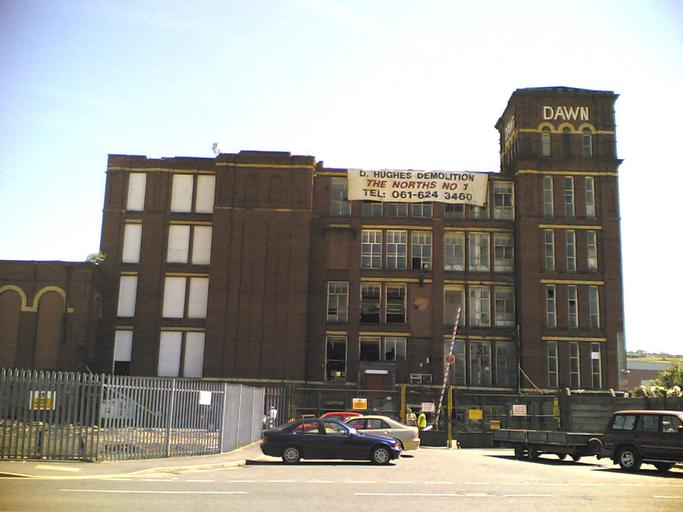 Keywords: PMB.Dawn.Demolition.15072006.jpg en Progress of demolition of Dawn Mill as it was at midday on Saturday 15th July 2006 shortly after it commenced The photograph was taken from Eastway on the west side of mill Note at this stage superficial destruction has been made with windows removed on 1st through 3rd floors to allow debris to be expelled from the building easily 2006-07-15 own work by original uploader User Peteb16 Peteb16 Original upload log en wikipedia ftcg page en wikipedia PMB Dawn Demolition 15072006 jpg wikitable - 15 55 15 July 2006 1 280 × 960 405 254 bytes Peteb16 w en This is an image showing the progress of demolition of Dawn mill as it was at midday on Saturday 15th July 2006 shortly after it commenced The photograph was taken from Eastway on the west side of mill Note at this stage superficial destruction has be - 12 51 15 July 2006 1 280 × 960 392 716 bytes Peteb16 w en Demolition of Dawn mill has commenced - taken from Eastway West side of mill on Saturday 15th July 2006 Dawn Mill |