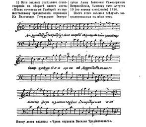 Keywords: Тредиаковский композитор.png ru Скан п имечания к изданию пе вой сводной биог афии В К Т едиаковского 1873 Пека ский П П Исто ия Импе ато ской Академии наук СПб 1873 С 25 В К Т едиаковский 1703 - 1769 other versions PD-old-70-1923 Vasily Trediakovsky |