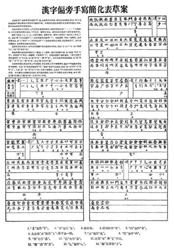 Keywords: 漢字簡化方案草案表三.png zh 1955年 漢字簡化方案草案 的第三表 漢字偏旁手寫簡化表草案 en List of simplification of Chinese character components in handwriting which is the third list in the 1955 draft of Chinese Character Simplification Scheme 1955 1955年學術 誌上的轉載 中 文字改 委員 other versions Custom license marker 2015 06 11 PD-PRC-exempt Simplified Chinese characters |