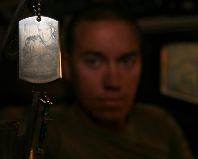 Keywords: Pocket-Sized Pieces of Mind, Deployed Marines Keep Reminders of Home, Luck and Faith Close to Their Hearts DVIDS268675.jpg en When Lance Cpl Zech Stimson a motor transportation operator with Combat Logistics Battalion 6 1st Marine Logistics Group Forward embarks upon an operation outside of his home base of Camp Leatherneck he ensures a photograph-etched dog tag given to him by his wife accompanies him as displayed aboard Forward Operating Base Edinburgh Afghanistan April 3 Like many Marines the 19-year-old Lapeer Mich native carries this piece of home with him for good luck while deployed in support of Operation Enduring Freedom 2010-04-03 Sgt Justin Shemanski https //www dvidshub net/image/268675 268675 2010-04-13 07 28 CAMP LEATHERNECK AF PD-USGov Operation Enduring Freedom Camp Leatherneck Images from DoD uploaded by Fæ |