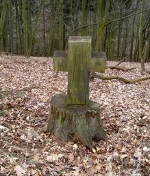 Keywords: Podkomorský dubový kříž.JPG cs Zajímavý křížek vrostlý v zemi foto z Podkomorských lesů Česká republika jižní Morava 2014-03-01 15 42 53 own Dendrofil cc-zero Uploaded with UploadWizard Podkomorské lesy Cultural monuments in Brno-Bystrc