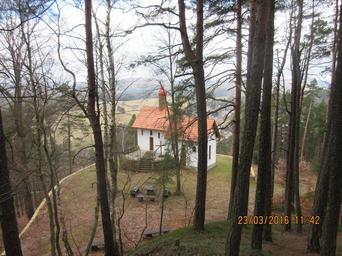Keywords: Pohled z vrcholu mařenické Kalvárie.JPG cs Od kříže na vrcholu kopce Kalvárie v Mařenicích je dobrý výhled na opravenou kapli 2016-03-23 11 42 03 own Zákupák other versions cc-zero Kalvárie Mařenice