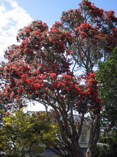 Keywords: Pohutu2312.jpg Pōhutukawa Metrosideros excelsa in flower Mount Albert Auckland New Zealand Own 2006-12-23 Kahuroa Released by author into public domain no rights reserved Kahuroa Metrosideros excelsa