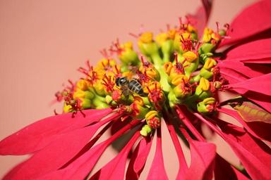 Keywords: poinsettia bee flower christmas plants honeybees nature biodiversity