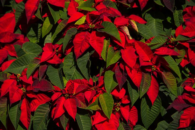 Keywords: poinsettia leaves flowers red green bright christmas