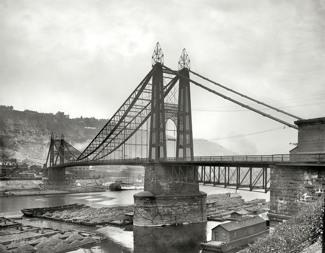 | Keywords: landscape outdoor pittsburgh point bridge pointbridge monochrome blackandwhite architecture bridge tower building structure building infrastructure black and white 1900. "Point Bridge and coal barges." Note the Duquesne Incline railway next to the Solomon & Ruben sign. 1900. "Point Bridge and coal barges." Note the Duquesne Incline railway next to the Solomon & Ruben sign. | ||||
