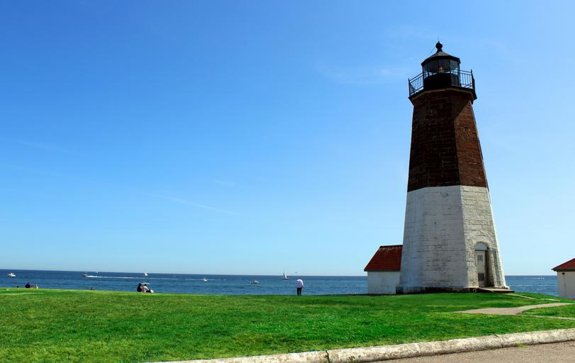 Keywords: point judith lighthouse narragansett rhode island ocean coast blue green sunny