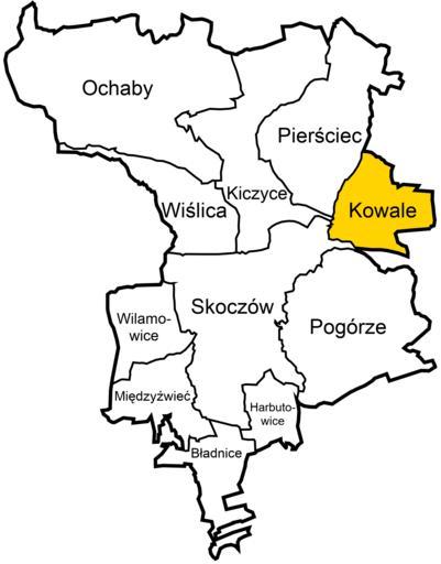 Keywords: POL Sołectwo Kowale.png pl Sołectwo Kowale na mapie gminy own D T G 2011-01-17 Cc-zero Kowale powiat cieszyński Locator maps of gmina Skoczów