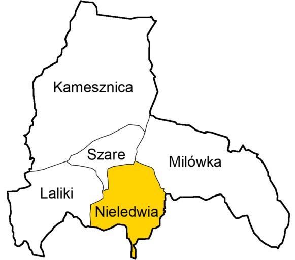 Keywords: POL Sołectwo Nieledwia.png pl Nieledwia na mapi egminy own D T G 2011-01-01 Cc-zero Locator maps of gmina Milówka Nieledwia
