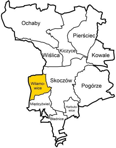 Keywords: POL Sołectwo Wilamowice.png pl Sołectwo Wilamowice na mapie gminy own D T G 2011-01-17 Cc-zero Wilamowice powiat cieszyński Locator maps of gmina Skoczów