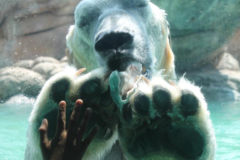 Keywords: polar bear nature ecology bio366 uncw ursus maritimus human june 2016 north carolina zoo #uncweteal uncweteal su2016 image3 outside arctic ice global warming asheboro zoological zoology mammal marine predator keystone nc outdoor This weekend I visited the North Carolina Zoo in Asheboro, North Carolina. I saw so many fascinating organisms there, but this Polar Bear (Ursus Maritimus) during his feeding time was one of the most striking. Polar Bears are apex predators as well as a keystone species in their Arctic habitats. Predominately carnivores, Polar Bears love to eat harbor seals. However, they will scavenge when their primary prey is in shortage. Human influence and global warming has greatly impacted the Polar Bear populations. In their Arctic habitats, Polar Bears live on ice and will swim to travel and to find food. As the ice melts more rapidly due to climate change, Polar Bears have increased chances of dying trying to hunt their food with not as many areas to land for a rest in between swims. Also, Poaching has negatively effected Polar Bear populations. Sadly, the Polar Bear is considered a "vulnerable" species with scientists predicting a very grim future for the future populations of Polar Bears. Source: www.pbs.org/wnet/nature/bears-of-the-last-frontier-polar-... This weekend I visited the North Carolina Zoo in Asheboro, North Carolina. I saw so many fascinating organisms there, but this Polar Bear (Ursus Maritimus) during his feeding time was one of the most striking. Polar Bears are apex predators as well as a keystone species in their Arctic habitats. Predominately carnivores, Polar Bears love to eat harbor seals. However, they will scavenge when their primary prey is in shortage. Human influence and global warming has greatly impacted the Polar Bear populations. In their Arctic habitats, Polar Bears live on ice and will swim to travel and to find food. As the ice melts more rapidly due to climate change, Polar Bears have increased chances of dying trying to hunt their food with not as many areas to land for a rest in between swims. Also, Poaching has negatively effected Polar Bear populations. Sadly, the Polar Bear is considered a "vulnerable" species with scientists predicting a very grim future for the future populations of Polar Bears. Source: www.pbs.org/wnet/nature/bears-of-the-last-frontier-polar-...
