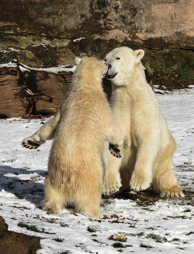 Keywords: polar bear play fight predator young nuremberg dangerous snow winter tiergarten