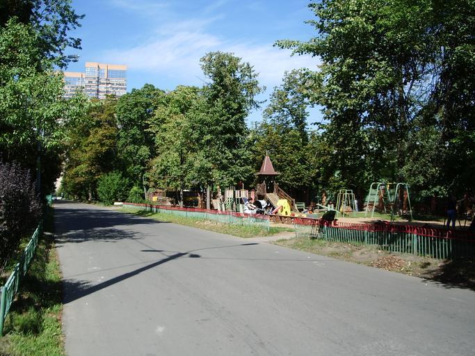 Keywords: Polenova street (Moscow).JPG en Polenova street Sokol settlement in Moscow ru Улица Поленова и детская площадка Посёлок Сокол в оскве Own Andreykor 2011-08-24 Cc-zero Sokol Settlement Moscow