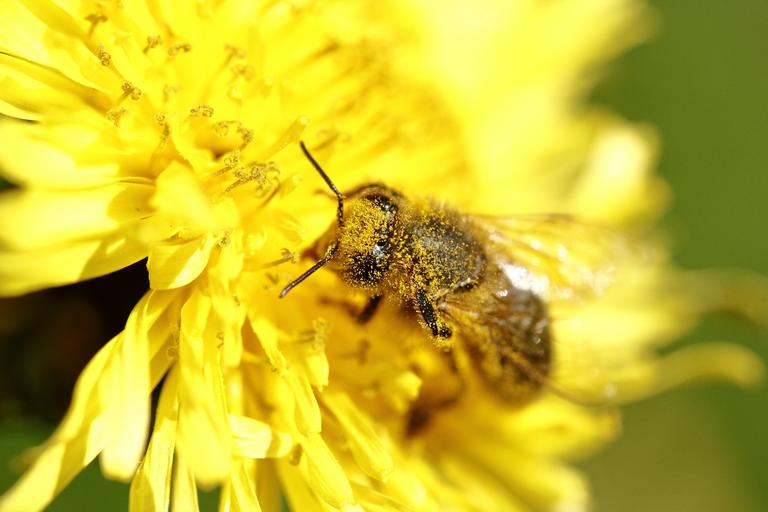 Keywords: pollen bee macro forage insects spring flowering garden nature