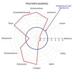 | Keywords: Polyvinylalkohol-Spinne.svg Spinnendiagramm Beständigkeit von Polyvinylalkohol-Schutzhandschuhen Glove selection Polyvinyl alcohol Own after http //www dguv de/dguv/medien/ifa/de/pra/chemikalienschutzhandschuhe/pdf/polyvinylalkohol pdf 2015-01-24 Kopiersperre code by StefanPohl PD-own Inkscape gnuplot reset set term svg size 700 700 fname 'Verdana' fsize 12 set size square 9 set lmargin at screen 15 set tmargin at screen 9 set angles degrees unset key unset border set polar set rtics 0 0 1 1 2 2 3 3 4 4 5 5 6 6 7 set rrange 1e-2 7 unset xtics unset ytics set grid polar 30 lt 1 lc 0 lw 0 3 set_label x text sprintf set label ' s' at 8 cos f 8 sin f center text x x eval set_label 0 Methanol 0 eval set_label 30 Aceton 0 eval set_label 60 Acetonitril 5 eval set_label 90 Dichlormethan 6 eval set_label 120 Schwefelkohlenstoff 6 eval set_label 150 Toluol 6 eval set_label 180 Diethylamin 1 eval set_label 210 Tetrahydrofuran 4 eval set_label 240 Ethylacetat 6 eval set_label 270 n-Heptan 6 eval set_label 300 NaOH 0 eval set_label 330 H2SO4 0 set output 'polyvinylalkohol svg' plot - u 1 2 t Polyvinylalkohol w l lt 1 lw 3 lc rgb 0xFF0000 0 1 30 1 60 6 90 7 120 7 150 7 180 2 210 5 240 7 270 7 300 1 330 1 360 1 e unset output Chemical resistance diagrams |
