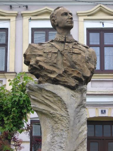 Keywords: PomnikSkarżyńskiego-Warta.JPG pl pomnik płk pilota Stanisława Skarżyńskiego na głównym placu w mieście Warta own Julo 2009-06-07 Julo Stanisław Jakub Skarżyński Busts in Poland Monuments and memorials in Warta