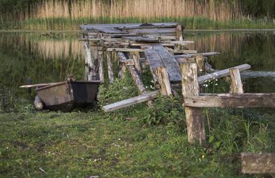 Keywords: pond the old bridge vanishing water boat nature wooden bridge