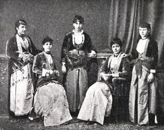 Keywords: Pontian Greek dress Trabzon.JPG en Pontian Greek women in traditional dress in Trapezounta Pontus modern Trabzon Turkey el Ελληνο όντοι Τρα εζούντιες νέες με αραδοσιακές στολές Τρα εζούντα tr Trabzon'da geleneksel kıyafet Pontus Yunan kadın 1900 http //www omegatechnology gr/epm2/photos aspx page 62 Ε ιτρο ή Ποντιακών ελετών author Attribution metadata from licensed image PD-Ottoman Pontic Greeks People of Trabzon Province |