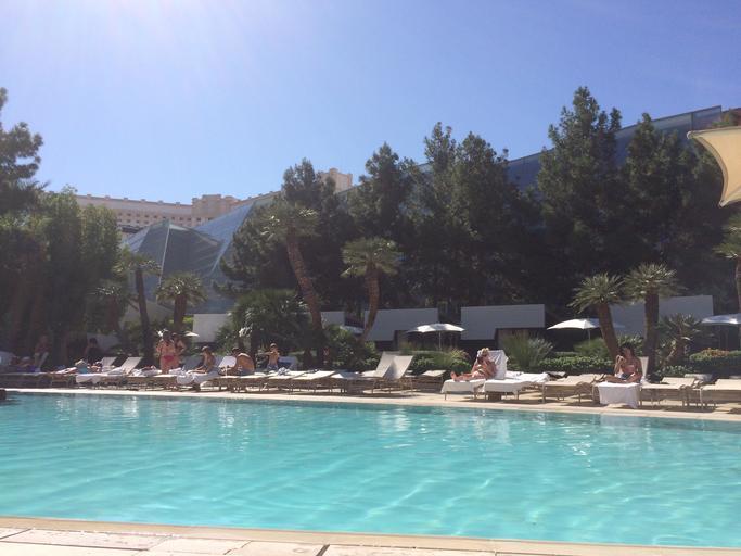 Keywords: pool aria vegas swimming pool sunbathing holidays summer green tree tourists