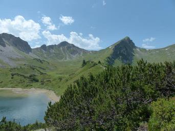 Keywords: pool lake little lake bergsee alpine lake water clear crystal clear hike mountain hike hiking more mountains alpine trail vilsalpseeberge allgäu alps tyrol austria saalfeld höhenweg excursion day hiking day stone kar tip red lace