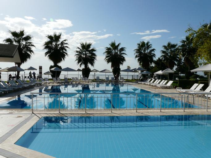 Keywords: pool schwimmungpool water basin hotel hotel complex frisch water swim cooling palm trees sun loungers web holiday rest recovery