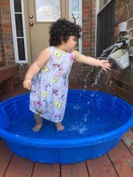 Keywords: pool summer swimming pool child kid playing wet childhood girl water fun summertime joyful play backyard caucasian outdoors outside