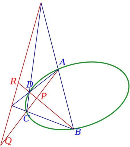 Keywords: Pooldriehoek volledige vierhoek.svg nl De diagonaalpunten van een volledige vierhoek van punten op een niet ontaarde kegelsnede K vormen een pooldriehoek van K 2013-08-30 15 48 14 own Jhncls cc-zero Uploaded with UploadWizard Ellipses