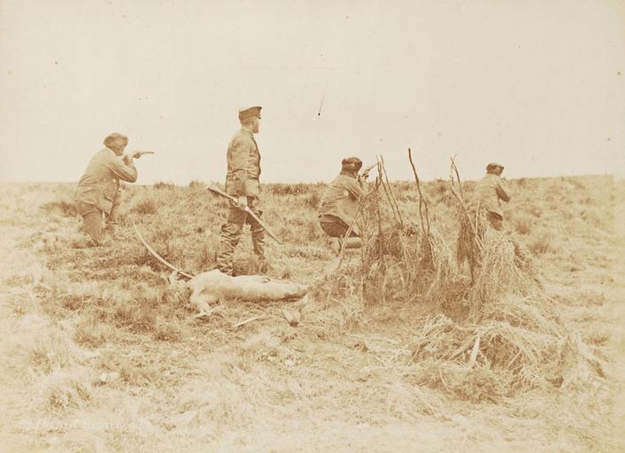 | Keywords: Popper en caceria.jpg en Julius Popper during one of his aborigin hunters At his feet an aborigin murderer by his militians es Julius Popper en una de sus cacerías de indios Un originario desnudo asesinado por sus milicias al pie de Popper Photo album donated to then-president Miguel Juárez Celman 1886 author PD-AR-Anonymous PD-anon-1923 History of Argentina 1886 photographs Selknam Genocide Julius Popper | ||||