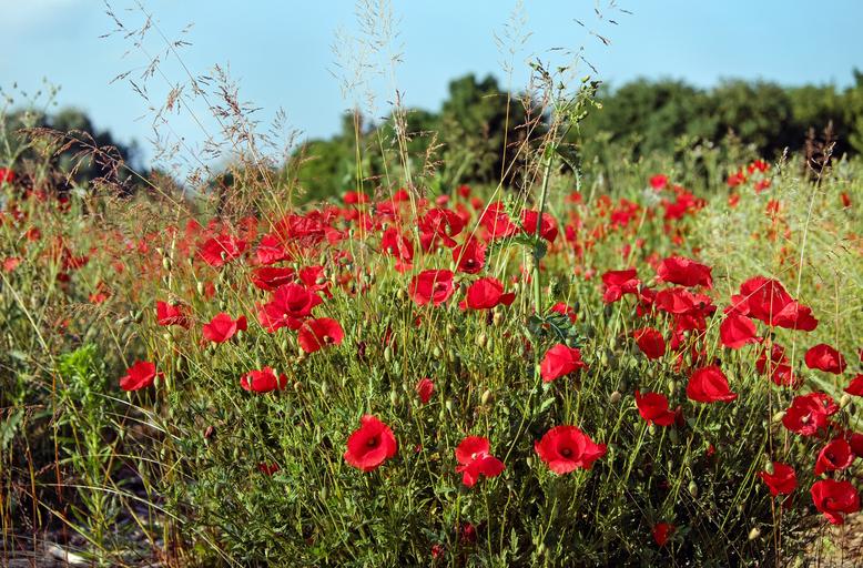 Keywords: poppy flower blossom bloom red klatschmohn field of poppies nature