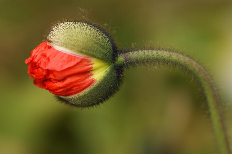 Keywords: poppy flower blossom poppy bud folded mohngewaechs macro nature flowers bright bursting hairy poppy bud color bloom flora plant close red green