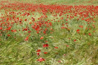 Keywords: poppy red landscapes nature field spring cereals wheat green agriculture flower