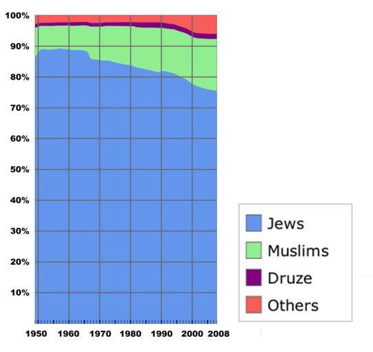 | Keywords: Population of Israel.png diagram en Population chart of Israel by religion from 1949 to 2008 Population_of_Israel svg 2010-06-29 05 27 UTC Population_of_Israel svg Demmo derivative work TheCuriousGnome <span class signature-talk >talk</span> full chart + fixed fonts TheCuriousGnome Population_of_Israel svg Own work by uploader Demmo 2009-09-17 Demographics of Israel</nowiki> Uploaded with derivativeFX Israeli population in thousands Compiled from data from the Central Bureau of Statistics http //docs google com/viewer a v q cache 4ck_Q1xGVvoJ www cbs gov il/shnaton59/st02_02 pdf+1949+2008+1 013 9+111 5+ D7 93 D7 A8 D7 95 D7 96 D7 99 D7 9D hl en gl us pid bl srcid ADGEESijp8zoC1TonFwxC8YQLM2ZCZLeuyzEEYfWhsIZS22M3yiltcqS1lr4aG0O9Wn1XllK6lrz06WFmKWv932bv4op16Pq0yopbGmhc5NCuNbgYbObf09qWpnUSks0Vp82tdaVoJME sig AHIEtbRdO-TU3X2geRiOMxoEtngL1hkycQ Data 2009 onwards hasn't been added to the graph wikitable center style background f0f0f0; ___Year___ center style background f0f0f0; ___Jews___ center style background f0f0f0; ___Muslims___ center style background f0f0f0; ___Druze___ center style background f0f0f0; ___Grand Total___ - 1949 1 013 9 111 5 14 5 1 173 9 - 1950 1 203 0 116 1 15 0 1 370 1 - 1951 1 404 4 118 9 15 5 1 577 8 - 1952 1 450 2 122 8 16 1 1 629 5 - 1953 1 483 6 127 5 16 8 1 669 4 - 1954 1 526 0 131 8 18 0 1 717 8 - 1955 1 590 5 136 2 19 0 1 789 1 - 1956 1 667 5 141 3 19 8 1 872 4 - 1957 1 762 8 146 8 20 5 1 976 0 - 1958 1 810 2 152 8 21 4 2 031 7 - 1959 1 858 8 159 2 22 3 2 088 7 - 1960 1 911 3 166 3 23 3 2 150 4 - 1961 4 1 981 7 174 9 26 3 2 234 2 - 1962 2 068 9 183 0 27 3 2 331 8 - 1963 2 155 6 192 2 28 5 2 430 1 - 1964 2 239 2 202 3 28 6 2 525 6 - 1965 2 299 1 212 4 29 8 2 598 4 - 1966 2 344 9 223 0 31 0 2 657 4 - 1967 2 383 6 289 6 32 1 2 776 3 - 1968 2 434 8 300 8 33 3 2 841 1 - 1969 2 506 8 314 5 34 6 2 929 5 - 1970 2 582 0 328 6 35 9 3 022 1 - 1971 2 662 0 344 0 37 3 3 120 7 - 1972 4 2 752 7 360 6 37 8 3 225 0 - 1973 2 845 0 377 2 39 3 3 338 2 - 1974 2 906 9 395 2 40 8 3 421 6 - 1975 2 959 4 411 4 42 2 3 493 2 - 1976 3 020 4 429 0 43 9 3 575 4 - 1977 3 077 3 446 5 45 6 3 653 2 - 1978 3 141 2 463 5 47 3 3 737 6 - 1979 3 218 4 481 2 49 0 3 836 2 - 1980 3 282 7 498 3 50 7 3 921 7 - 1981 3 320 3 513 7 52 3 3 977 7 - 1982 3 373 2 530 8 65 6 4 063 6 - 1983 4 3 412 5 542 2 68 0 4 118 6 - 1984 3 471 7 559 7 70 0 4 199 7 - 1985 3 517 2 577 6 72 0 4 266 2 - 1986 3 561 4 595 0 74 0 4 331 3 - 1987 3 612 9 614 5 76 1 4 406 5 - 1988 3 659 0 634 6 78 1 4 476 8 - 1989 3 717 1 655 2 80 3 4 559 6 - 1990 3 946 7 677 7 82 6 4 821 7 - 1991 4 144 6 701 4 84 8 5 058 8 - 1992 4 242 5 725 4 87 1 5 195 9 - 1993 4 335 2 751 4 89 3 5 327 6 - 1994 4 441 1 781 5 91 7 5 471 5 - 1995 4 4 522 3 811 2 92 2 5 612 3 - 1996 4 616 1 839 9 94 5 5 757 9 - 1997 4 701 6 867 9 96 7 5 900 0 - 1998 4 785 1 899 8 99 0 6 041 4 - 1999 4 872 8 934 1 101 2 6 209 1 - 2000 4 955 4 970 0 103 8 6 369 3 - 2001 5 025 0 1 004 6 106 3 6 508 8 - 2002 5 094 2 1 038 3 108 5 6 631 1 - 2003 5 165 4 1 072 5 110 8 6 748 4 - 2004 5 237 6 1 107 4 113 0 6 869 5 - 2005 5 313 8 1 140 6 115 2 6 990 7 - 2006 5 393 4 1 173 1 117 5 7 116 7 - 2007 5 478 2 1 206 1 119 7 7 243 6 - 2008 5 569 2 1 240 0 121 9 7 374 0 - 2009 5 685 8 1 275 2 124 4 7 535 0 - 2010 5 806 5 1 311 4 127 0 7 701 3 - 2011 5 928 0 1 346 7 129 5 7 867 6 - 2012 6 053 4 1 382 7 131 9 8 038 5 - 2013 6 180 5 1 417 5 134 3 8 209 74 - Demographics of Israel Religion in Israel Druze in Israel Christianity in Israel Islam in Israel Judaism in Israel Religion statistics |