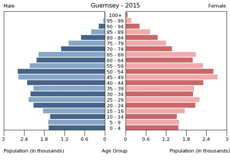 | Keywords: Population pyramid of Guernsey 2015.png en A population pyramid illustrates the age and sex structure of population and may provide insights about political and social stability as well as economic development The population is distributed along the horizontal axis with males shown on the left and females on the right The male and female populations are broken down into 5-year age groups represented as horizontal bars along the vertical axis with the youngest age groups at the bottom and the oldest at the top The shape of the population pyramid gradually evolves over time based on fertility mortality and international migration trends Віково-статева пі аміда населення Ге нсі за 2015 ік Вона дає наочне уявлення п о вікову і статеву ст укту а населення к аїни може слугувати дже елом інфо мації п о політичну і соціальну стабільність економічний озвиток Блакитними кольо ами ліво уч у вигляді го изонтальних смуг показані вікові г упи по 5 оків кожна чоловічої статі п аво уч ожевими жіночої аймолодші вікові г упи внизу найста іші вго і Фо ма пі аміди поступово еволюціонує з плином часу під впливом чинників на оджуваності сме тності і світової міг ації https //www cia gov/library/publications/the-world-factbook/ The World Factbook 2016-09-21 The Central Intelligence Agency Цент альне озвідувальне уп авління PD-USGov Population pyramids of Guernsey |