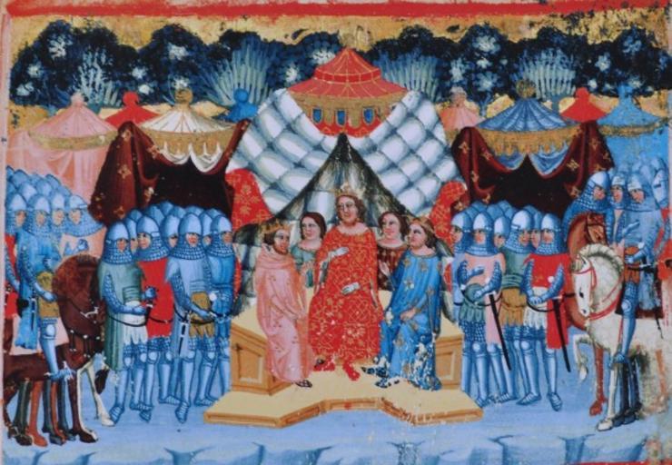 Keywords: Porada.jpg cs Jindřich III se radí se svými muži před bitvou s Čechy Dalimil chronik author century 14 PD-Art Chronik Dalimil Henry III Holy Roman Emperor Medieval miniatures of knights Medieval miniatures of horses