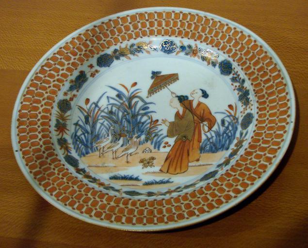 | Keywords: Porcelaine chinoise Guimet 291106.jpg Plat à décor de personnages dans un paysage Dynastie Qing début de la période Qianlong 1736-1795 vers 1736-1738 Bleu de cobalt rouge de fer et rehauts d'or Pièce de commande pour la Compagnie des Indes hollandaises Musée Guimet Paris Own 2007-11-27 Vassil Chinese export porcelain in Musée Guimet Porcelain of China in Musée Guimet Dutch East India Company Porcelains of the Qing Dynasty | ||||