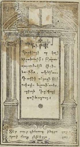 | Keywords: Porphyry. On Aristotle's Categories, 1793.jpg en Титульный лист издания пе евода «Введение в Катего иям А истотеля» По фи ия http //greenstone flib sci am/gsdl/cgi-bin/library cgi e d-01000-00---off-0armenian-armbook 2carmenian 2chajgirqn 2chaygirq 2cNo_Date_Books 2cazgayinZz-foreign-01-1----0-10-0---0---0direct-10---4-------0-1l--11-en-50---20-about---00-3-1-00-0-0-01-1-0-00-0-0-11-10-0utfZz-8-00 a d c armenian cl CL1 132 d HASH59894dd7a40689a4f48b80 Harutyun Shmavonyan 1793 PD-old-100 Porphyry philosopher 18th century Armenian printing |
