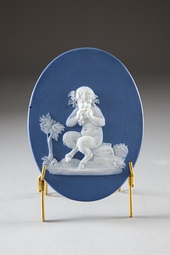 | Keywords: Porslinsplakett med faun, gjord på 1700-talets slut - Hallwylska museet - 93874.tif LSH artwork sv Stående oval plakett med i pålagd vit relief mot blå botten i Wedgwoods stil s k jasper ware en faun sittande på ett stenblock vänd snett framåt vänster samt ätande vindruvor i håret en vinlövskrans Tillv Eventuellt i Ilmenau Thüringen Gåva till Wilhelmina von Hallwyl från hennes svärson Wilhelm von Geijer julaftonen 1916 original caption Porslinsplakett med faun gjord på 1700-talets slut <br/> Nyckelord Fauner Mytologi Europeiskt porslin 1700-tal Porslin Föremålsbild end other date century 18 size cm 8 4 11 1 HWY place of origin DE original filename hm_dig3933 17680 inventory number HWY XLVII XII V b b 02 93874 CC-BY-SA Jens Mohr Porcelain Mythology Porcelain in the Hallwyl museum Jens Mohr Media contributed by LSH unmatched keyword Media contributed by LSH 2014-11 |