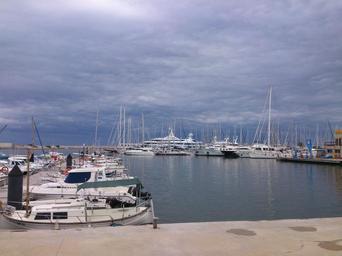 Keywords: port boats fishing vilanovailagetrú sea water landscape clouds