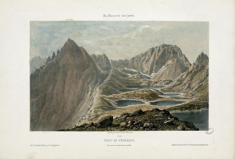 | Keywords: Port de Vénasque - Vue prise au-dessus des cinq lacs - Fonds Ancely - B315556101 A MERCEREAU 1 014.jpg Impression en 3 coul par Frick frères à Paris Les recueils de lithographies de Mercereau sont composés de lithographies provenant de La France de nos jours vaste suite publiée par livraisons de 1853 à 1876 et comprenant 475 planches en deux tirages l'un à deux teintes noir et bistre l'autre en couleurs Les libraires ont réuni ces planches en albums de composition variable quant au nombre de planches et aux dessinateurs Asselineau Mercereau Maurice Deroy etc Un titre Les Pyrénées par Ch Mercereau; Bagnères-de-Luchon par Ch Mercereau était frappé sur le plat supérieur de la reliure de l'album ainsi que le nom du Libraire pour lequel il était réalisé La plupart des recueils de ces planches pyrénéennes portent le nom de Sajous libraire à Bagnères-de-Luchon; l'album le plus complet que nous ayons vu comprend 48 lithographies de Mercereau Peu commun Les pl 1 à 20 sont numérotées de 442 à 461 La pl 21 en camaïeux est numérotée 468 elle est dessinée d'après nature et lithographiée par Deroy La pl 22 ne porte aucune indication excepté le tampon Hommage du propriétaire Aimé Géruzet - Bagnères de Bigorre Ancely René 1876 - 1966 Possesseur fre public domain domaine public B315556101_A_MERCEREAU_1_014 jpg image/jpeg 1 f de pl lith en coul ; 30 cm oblong Frick frères Imprimeur Sinnett 17 -18 ; éditeur Éditeur http //numerique bibliotheque toulouse fr/collect/general/index/assoc//ark /74899/B315556101_A_MERCEREAU_1_014 dir/B315556101_A_MERCEREAU_1_014 jpg Bibliothèque municipale de Toulouse A-MERCEREAU 1-14 Creator Charles Mercereau http //catalogues toulouse fr/web2/tramp2 exe/do_keyword_search/log_in setting_key BMT1 servers 1home query p001496 Bagnères de Luchon - Vue de l'établissement thermal et du parc prise au dessus de la buvette Bagnères de Luchon entrée de l'avenue d'Etigny Cascade Richard - Vallée du Lys St Bertrand de Comminges - Maison de Pierre Bridaul en 1440 Haute Garonne Fond de la Vallé du Lys Cascade d'Enfer - Vallée du Lys Gouffre infernal - Vallée du Lys Cascade du Coeur - Vallée du Lys Lac et Cascade d'Oo i e Oô près Luchon Haute Garonne Eglise d'Oo i e Oô et glacier de la vallée Bagnères-de-Luchon l'établissement thermal et la buvette Castel-Vielh et la Vallée de Luchon Chemin du Port de Vénasque - Vue prise au-dessus de l'Hospice Cascade des Demoiselles Vallée de l'Hospice-Luchon Cascade des Parisiens - Vallée de l'Hospice Haute-Garonne Cascade de Juzet près Bagnères-de-Luchon Haute-Garonne St Béat Haute Garonne St Béat - Vue de la Chapelle Notre-Dame du Château Haute Garonne St Bertrand de Comminges Haute-Garonne Laval - Vue générale prise du Viaduc Sans titre Chalet vignette http //numerique bibliotheque toulouse fr/collect/general/index/assoc//ark /74899/B315556101_A_MERCEREAU_1_014 dir/B315556101_A_MERCEREAU_1_014_thumb jpeg between 1853 1876 Port de Vénasque - Vue prise au-dessus des cinq lacs B315556101_A_MERCEREAU_1_014 lithography - print - colors - color lithograph Horses Lakes of Haute-Garonne Trails Lakes in art Mountains in art History of Pyrénées Bagnères-de-Luchon in art Charles Mercereau Horsemen in art Mountain passes |