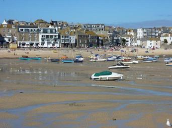 Keywords: port ebb fishing boats cornwall england village boats