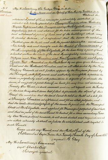 Keywords: Port Elizabeth Strangers Location land grant 1855.JPG en This is a photo of a page from one of the original Port Elizabeth Land Books from the early 1800s in which all property transfers were recorded with hand written details and hand drawn maps This one shows the granting of land on 27th June 1855 for the establishment of a strangers location in what is now Richmond hill for housing migrant workers NEW 2013-09-19 20 11 02 own Suzi-k PD-South-Africa-exempt za Uploaded with UploadWizard Uploaded via Campaign wlm-za Richmond Park Port Elizabeth |